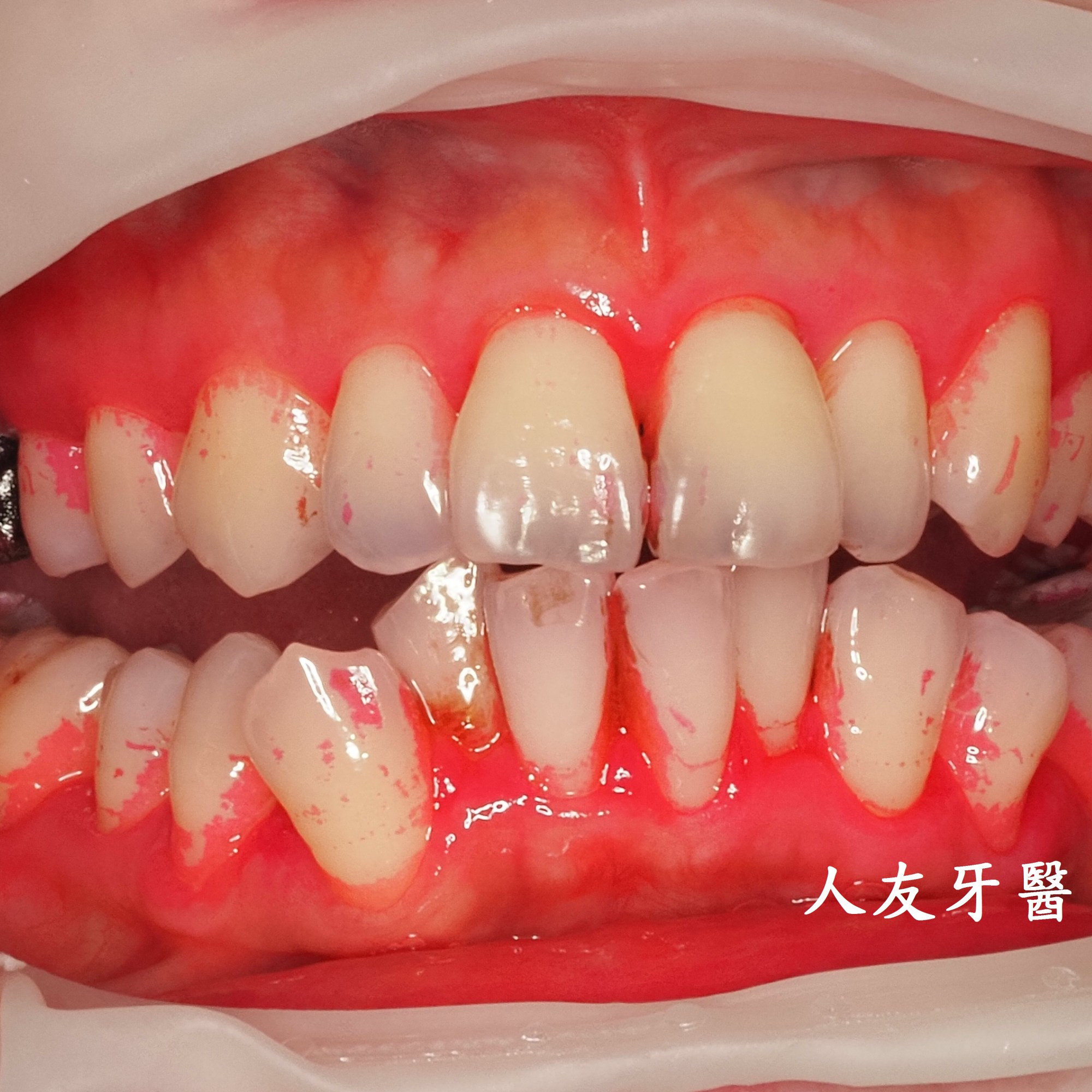 不僅影響美觀,也增加牙周病及蛀牙的風險(下方真牙照片左圖)。