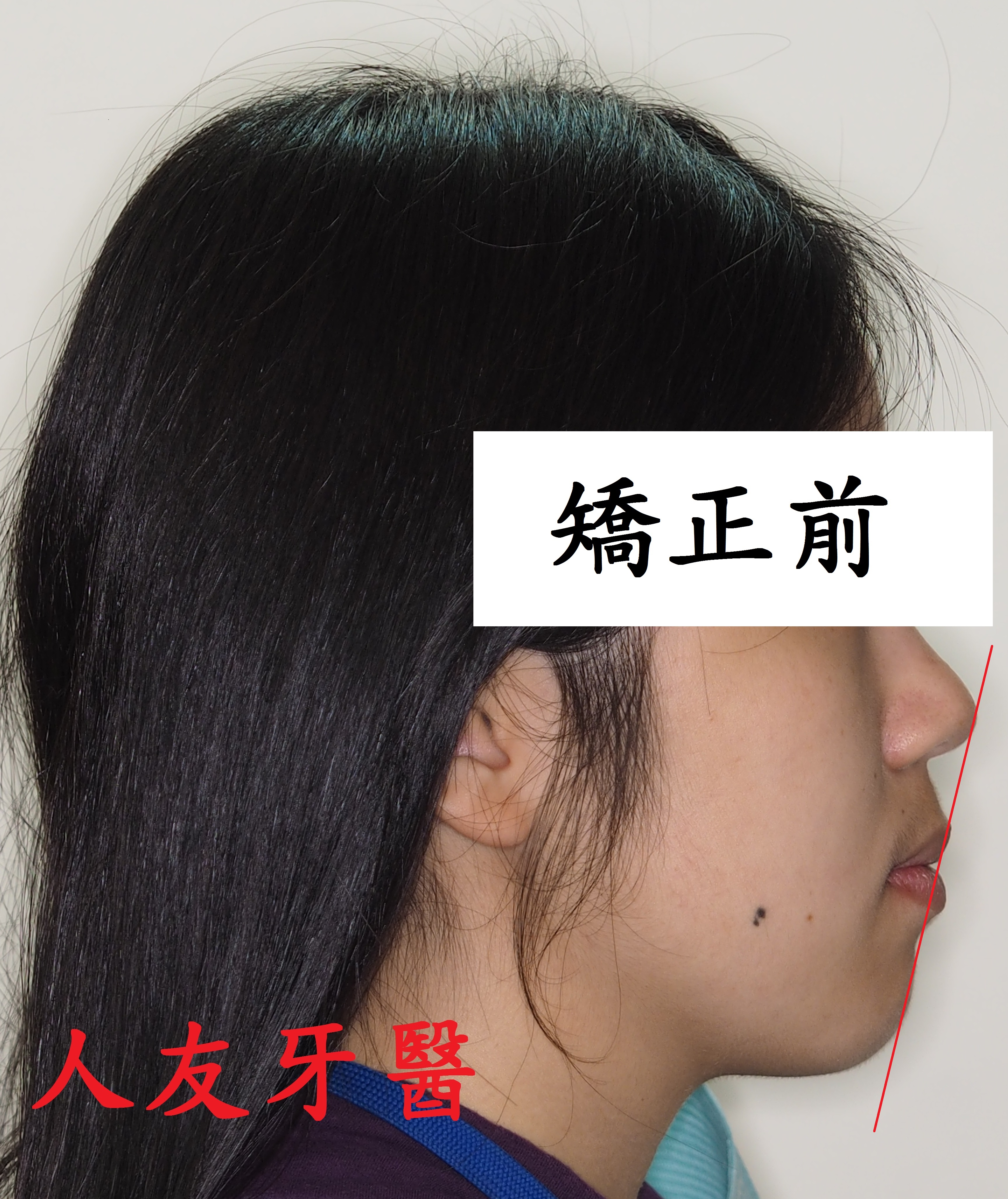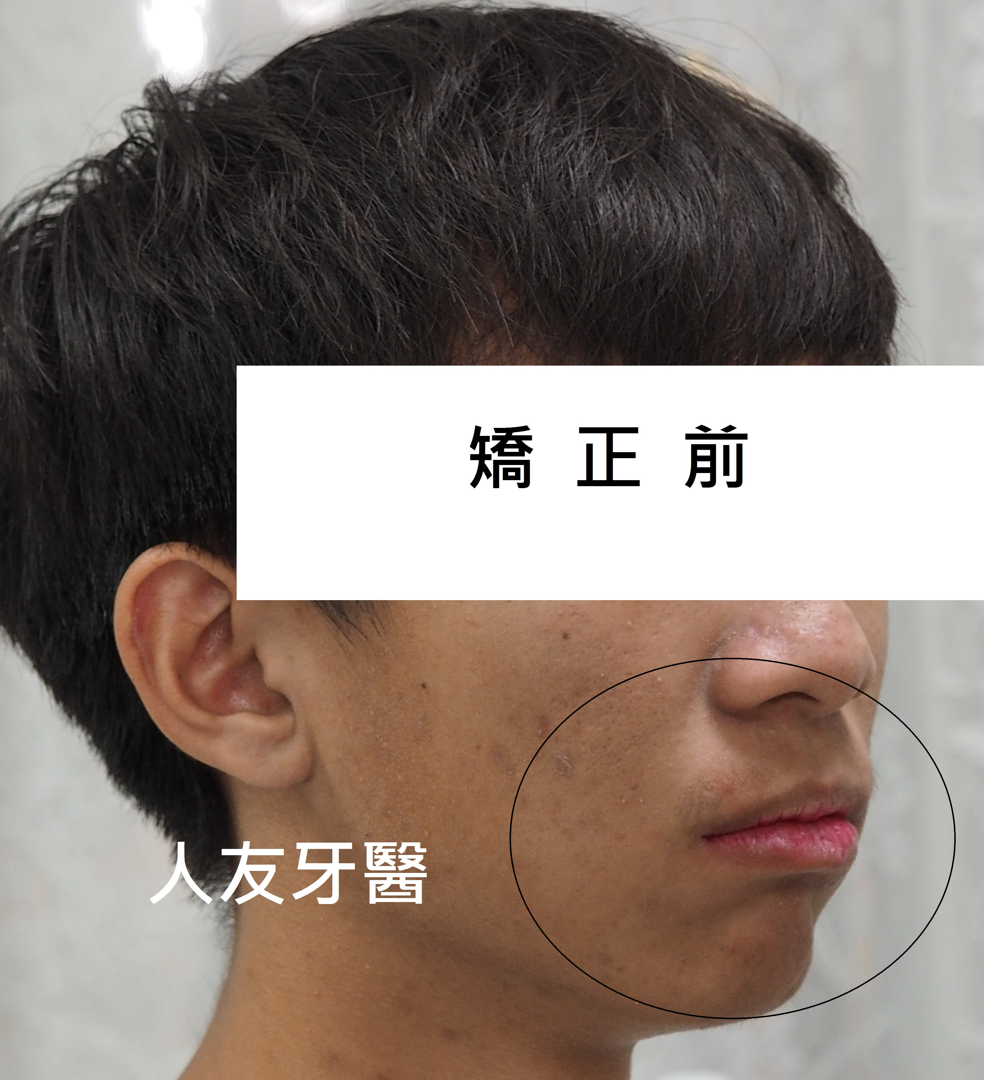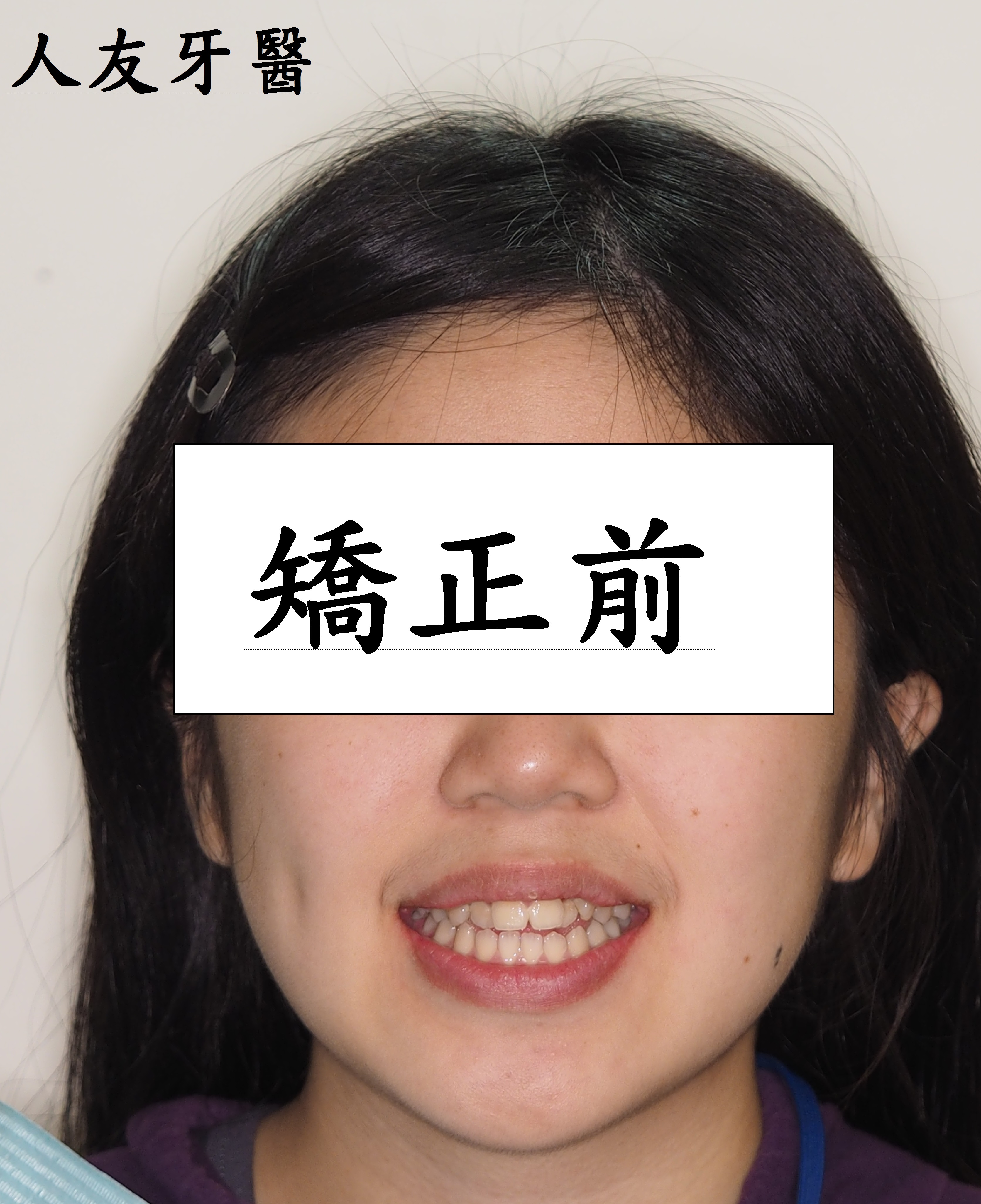 患者陳小姐嘴唇外凸,下門牙分開有一個漏財縫,陳小姐想透過矯正把漏財縫關掉跟改善嘴唇外凸的狀況.