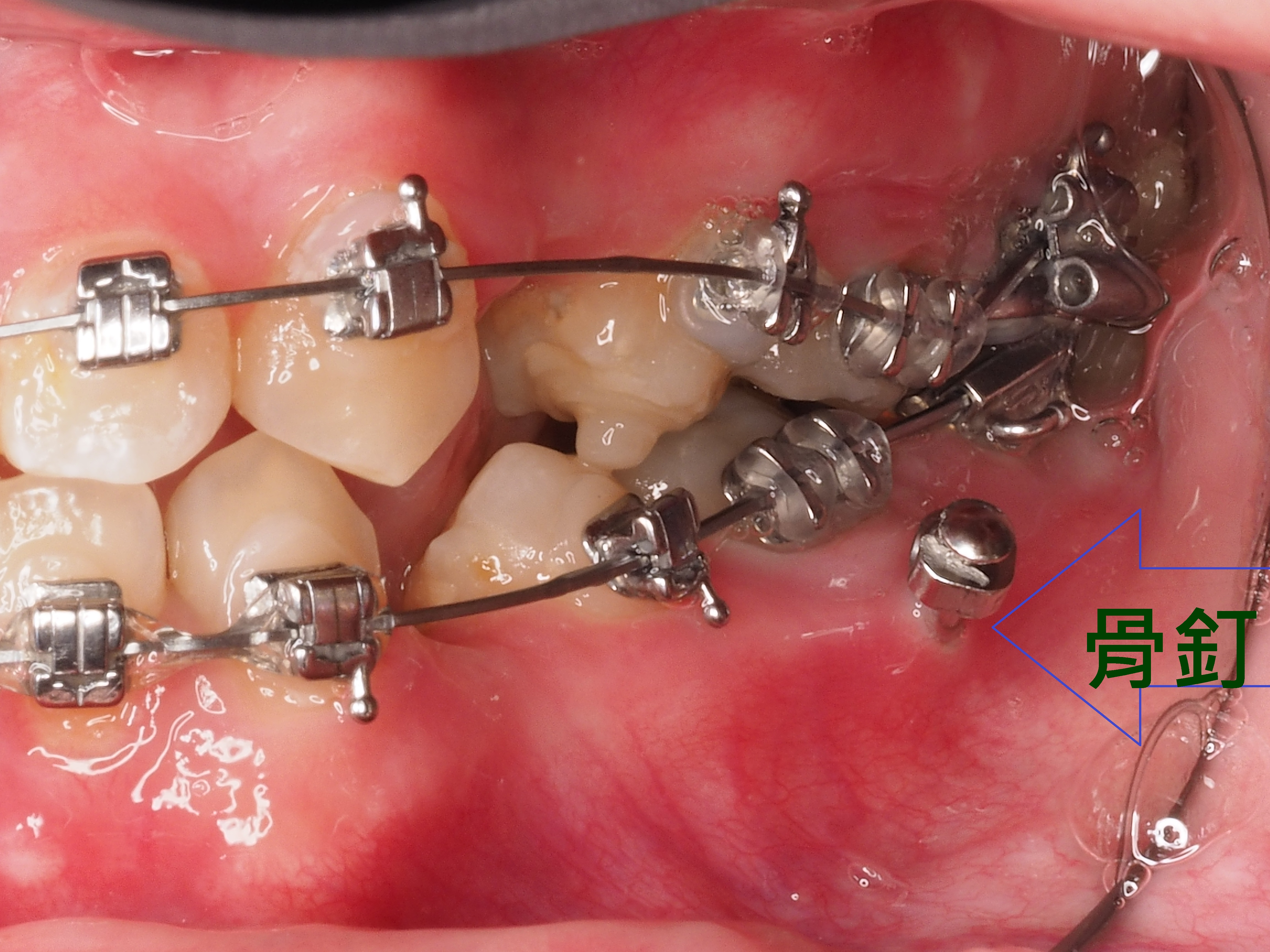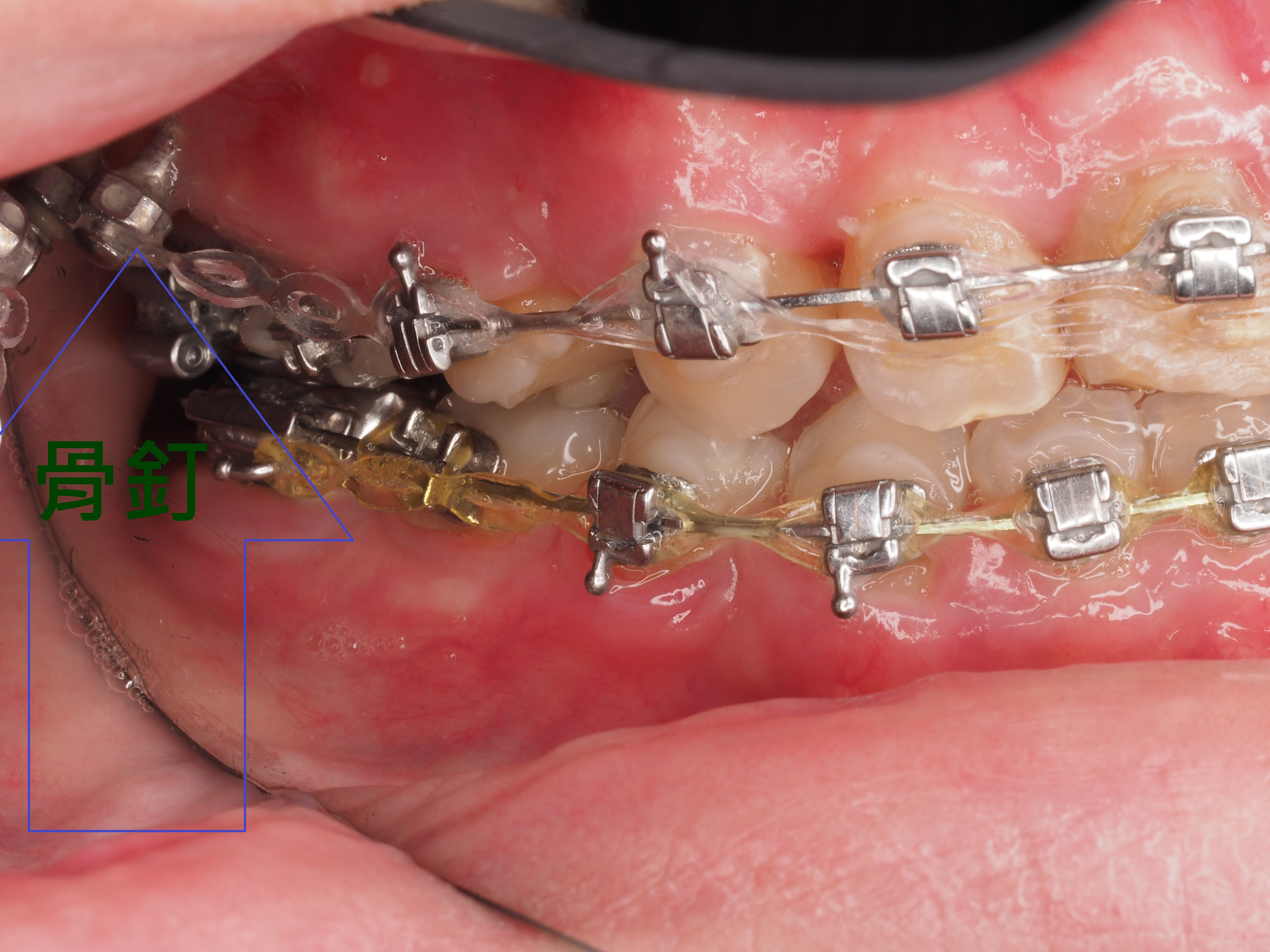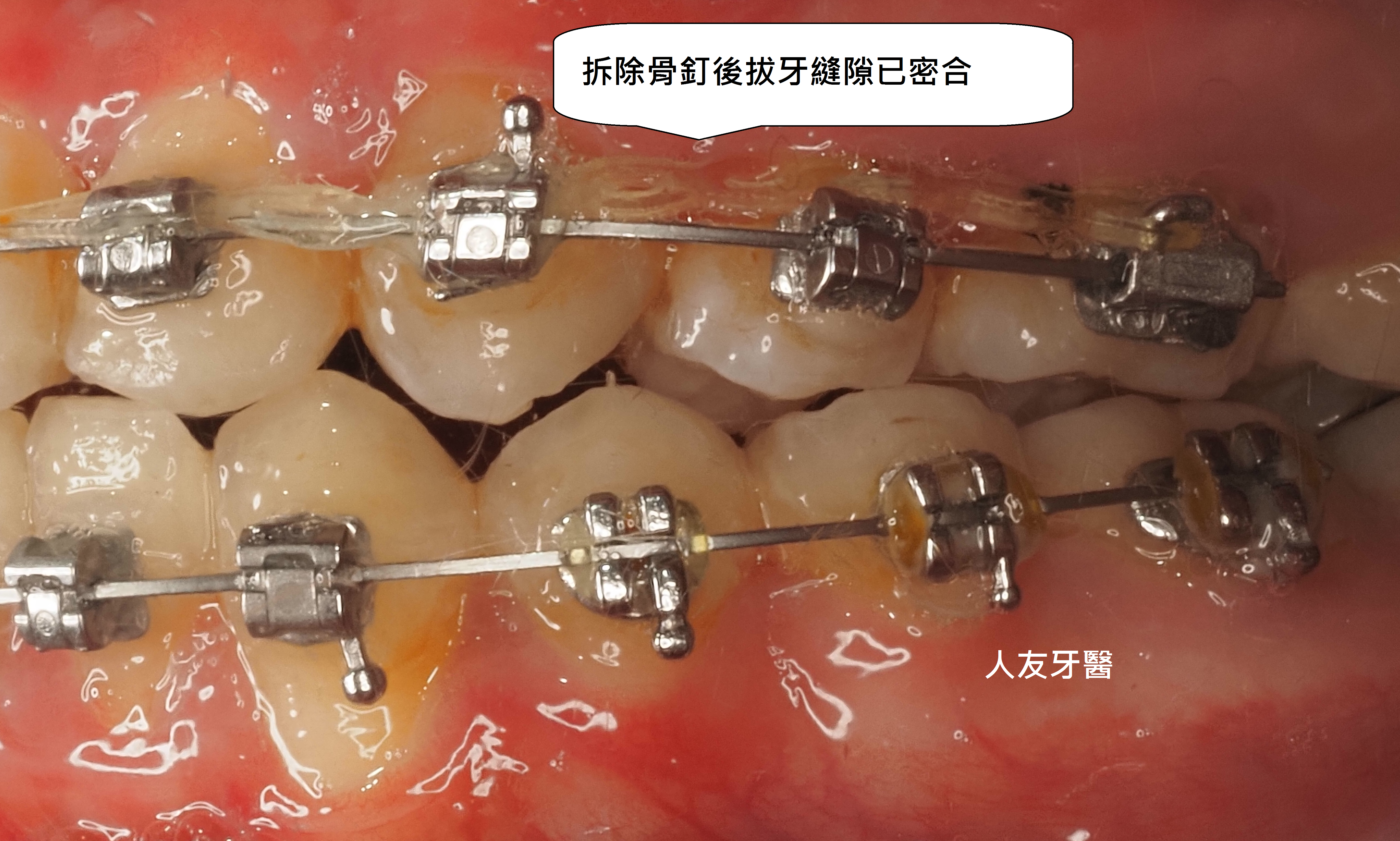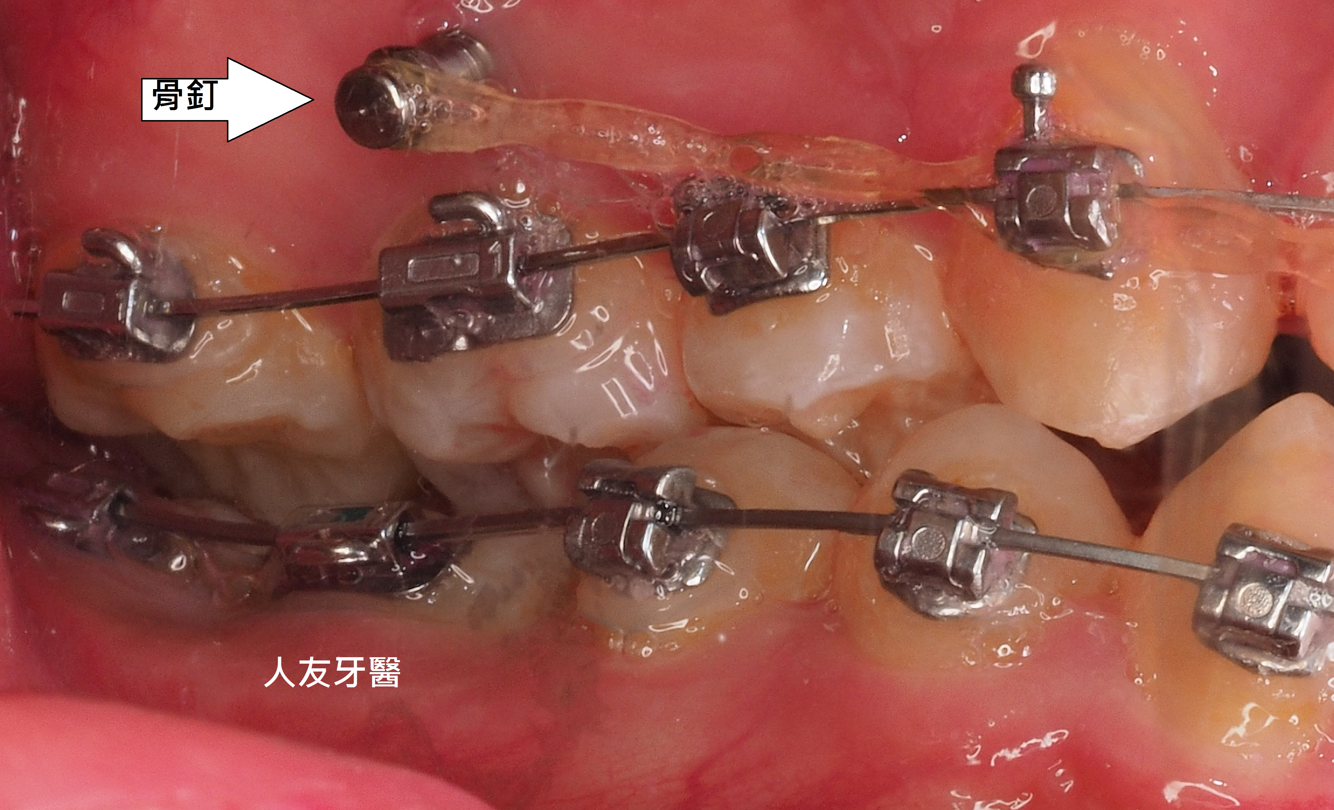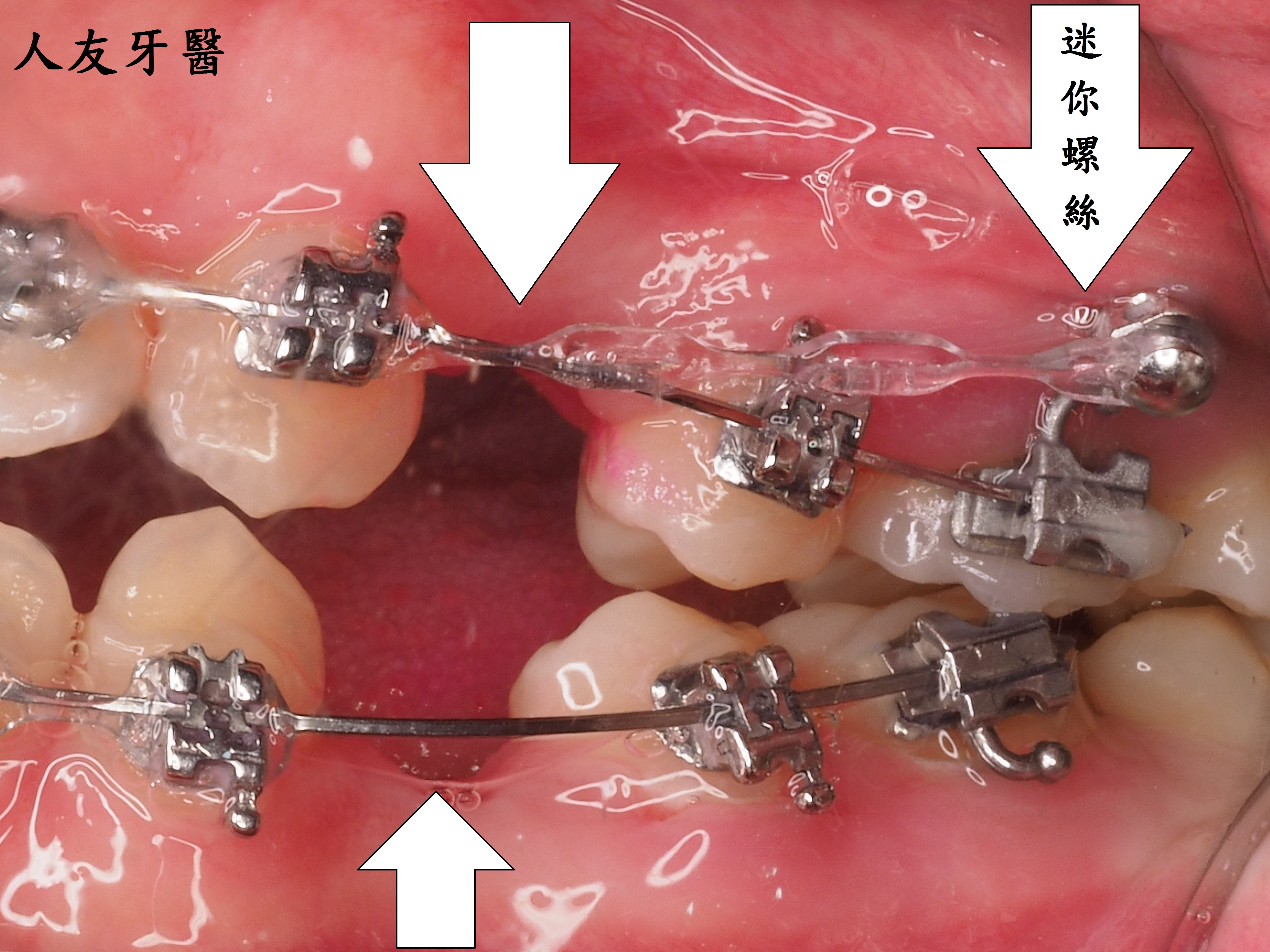3.拔牙與骨釘:為騰出空間進行矯正,需要拔牙;骨釘用於輔助移動牙齒,初期可能會有異物感,但通常很快能適應。(下兩圖)