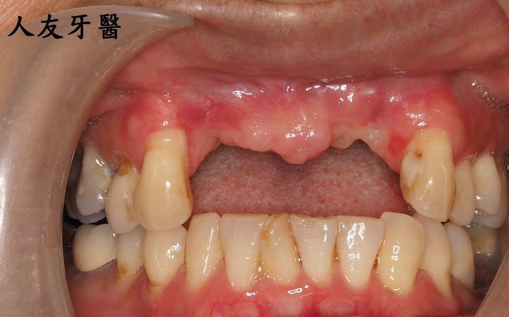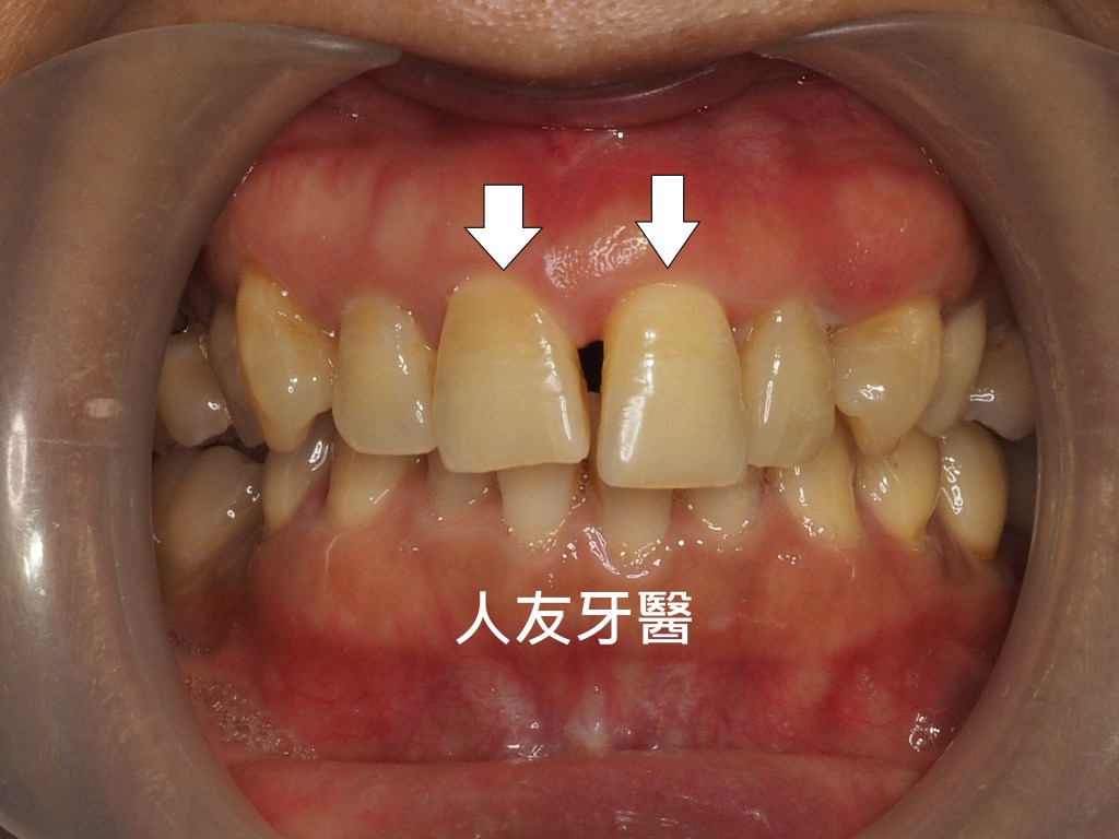 患者左上門牙因為牙周病牙床感染牙齒整個往下掉,門面縫隙整個也變很大,也大大影響美觀。