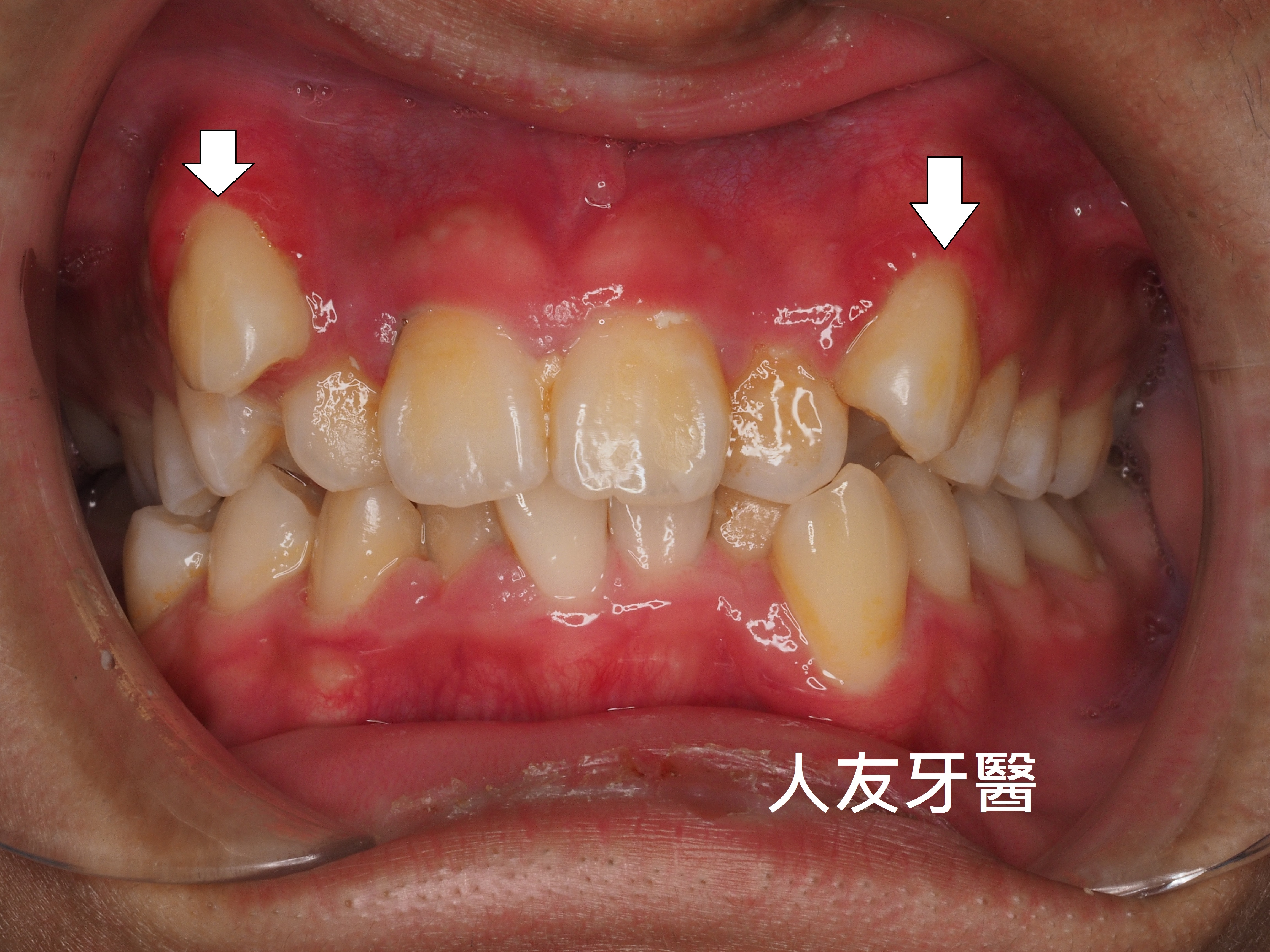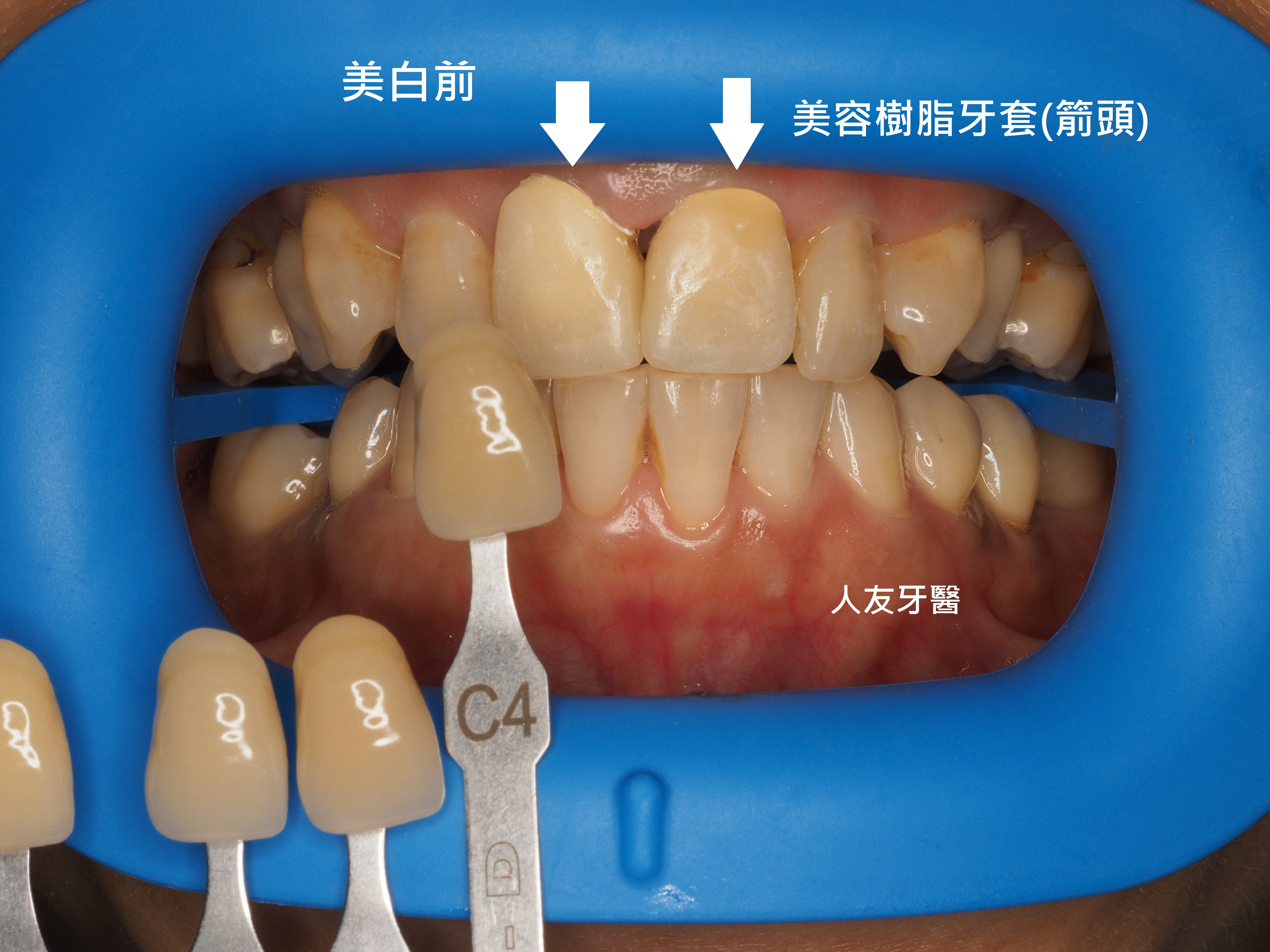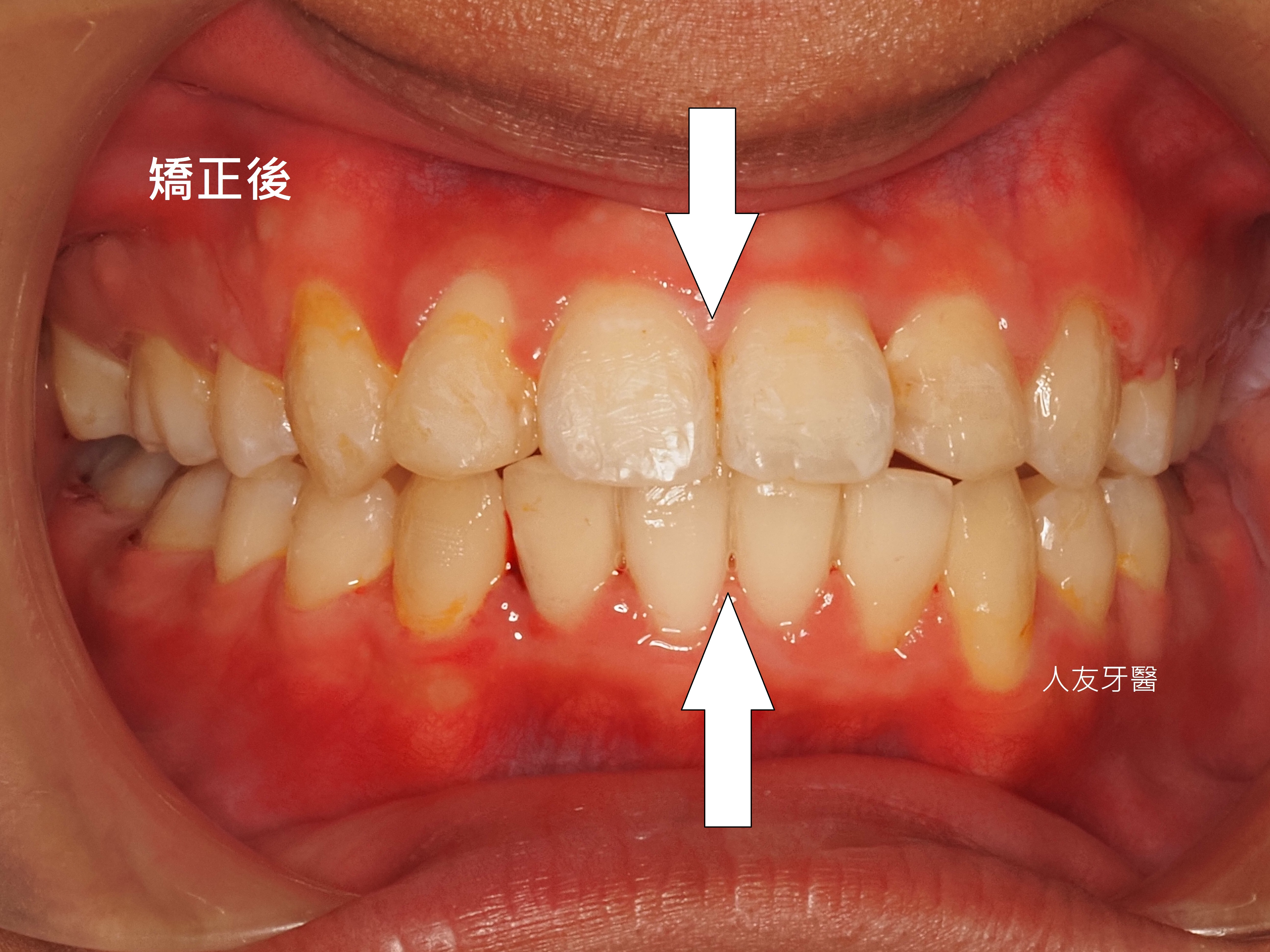矯正完成後,側門牙裝上牙套