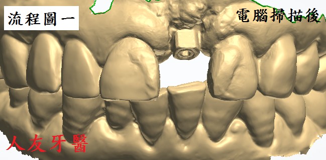 埋入植體後,待植牙骨密度到達標準值後再利用電腦掃描製作全鋯牙冠膺復