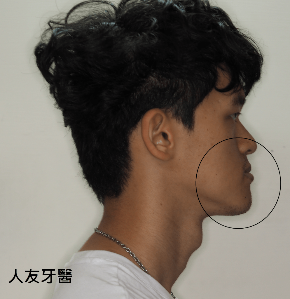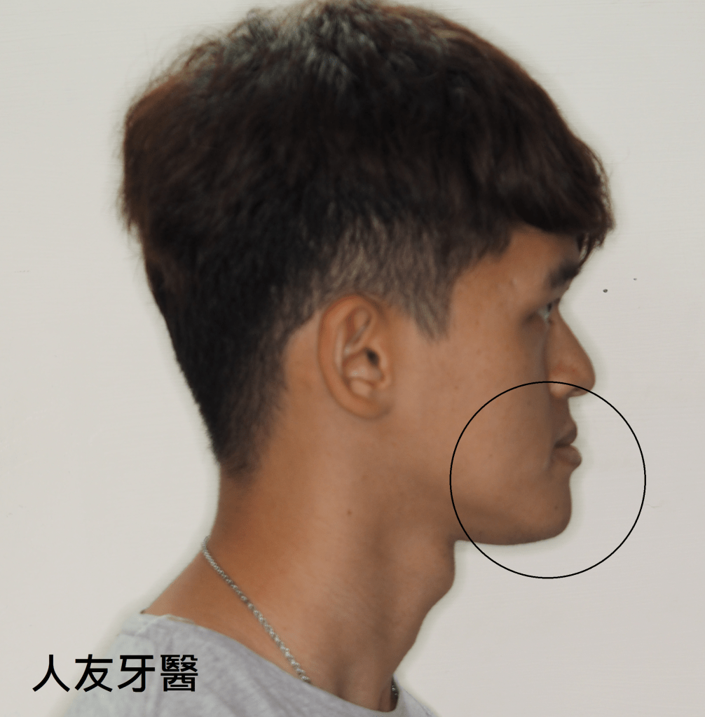 簡單來說,就是下排牙齒咬合起來時在外面,但上下排牙齒是可以咬到對方