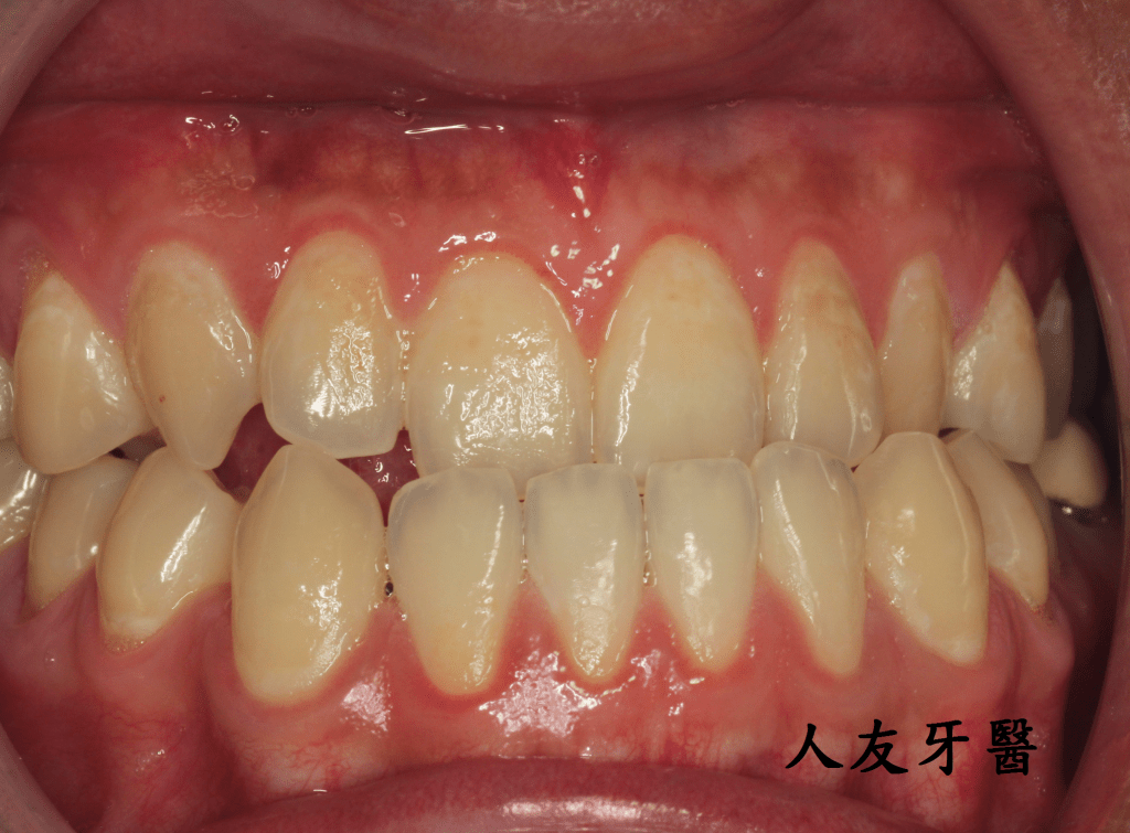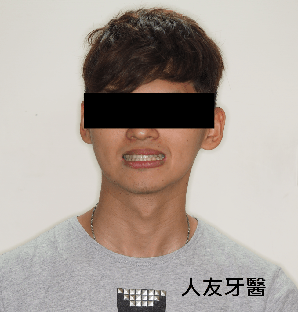 下圖是患者矯正前所拍攝照片很明顯中線不正以及下顎牙比上顎還突出