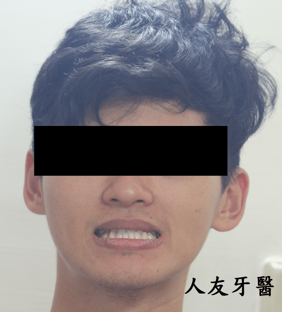 下圖是患者矯正前所拍攝照片很明顯中線不正以及下顎牙比上顎還突出