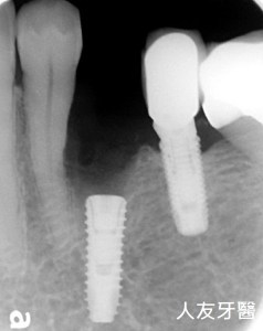 圖3利用拔牙的空間讓下排牙齒有空間退後 圖4已經看到下排牙齒排列較整齊,植牙也完成