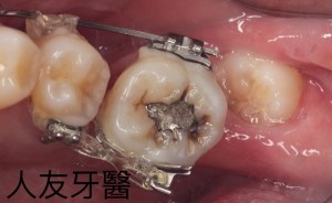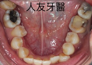 患者原本長期缺牙導致鄰近牙齒的歪斜,經由牙醫師評估應循序漸進先進行齒列矯正,將局部的自然牙排列整齊,重建正常的咬合關係,等缺牙區空間足夠時進行植牙,恢復整體的咬合功能,做完植牙重建工作之後,目前定期回診中,維持良好的口腔安定性。