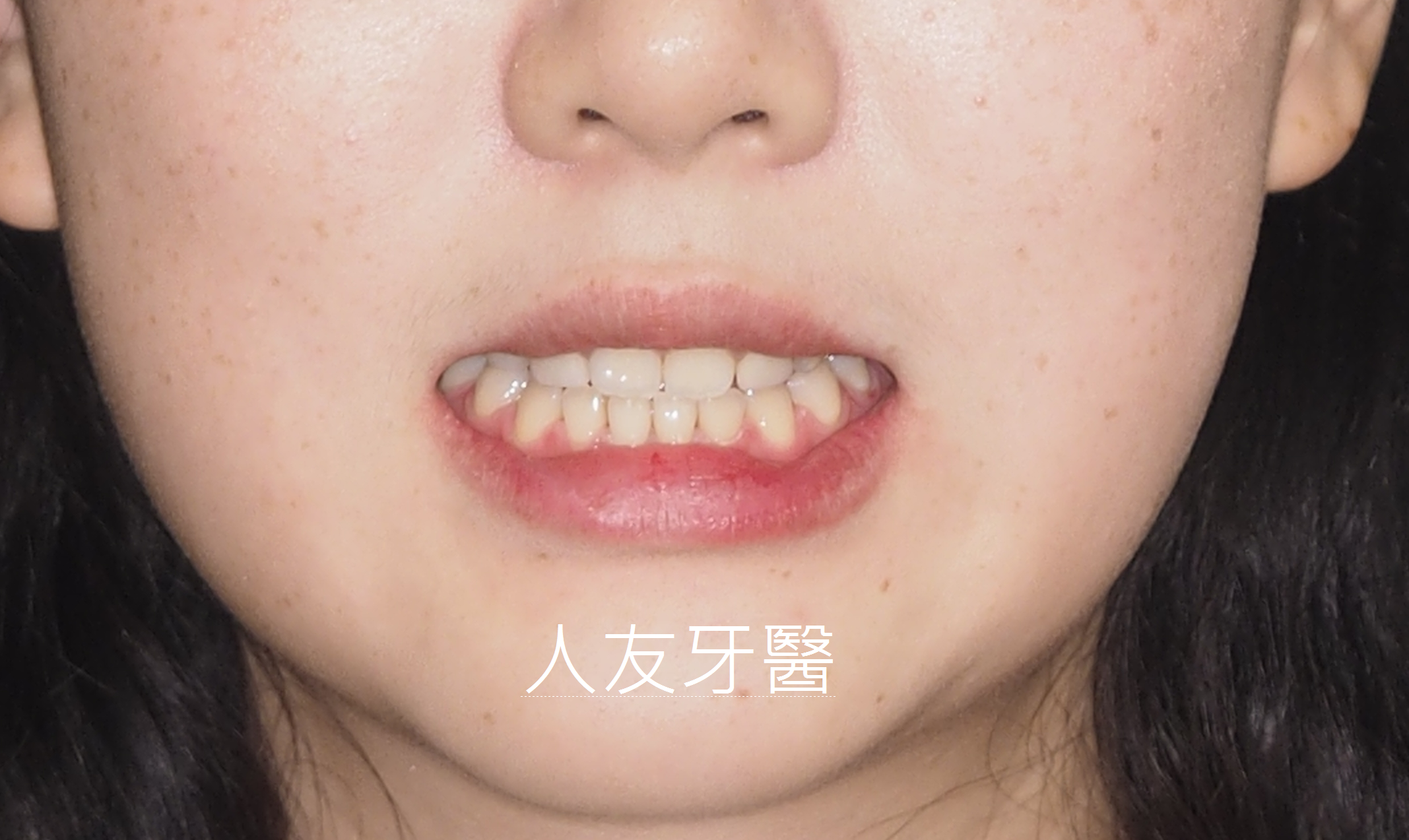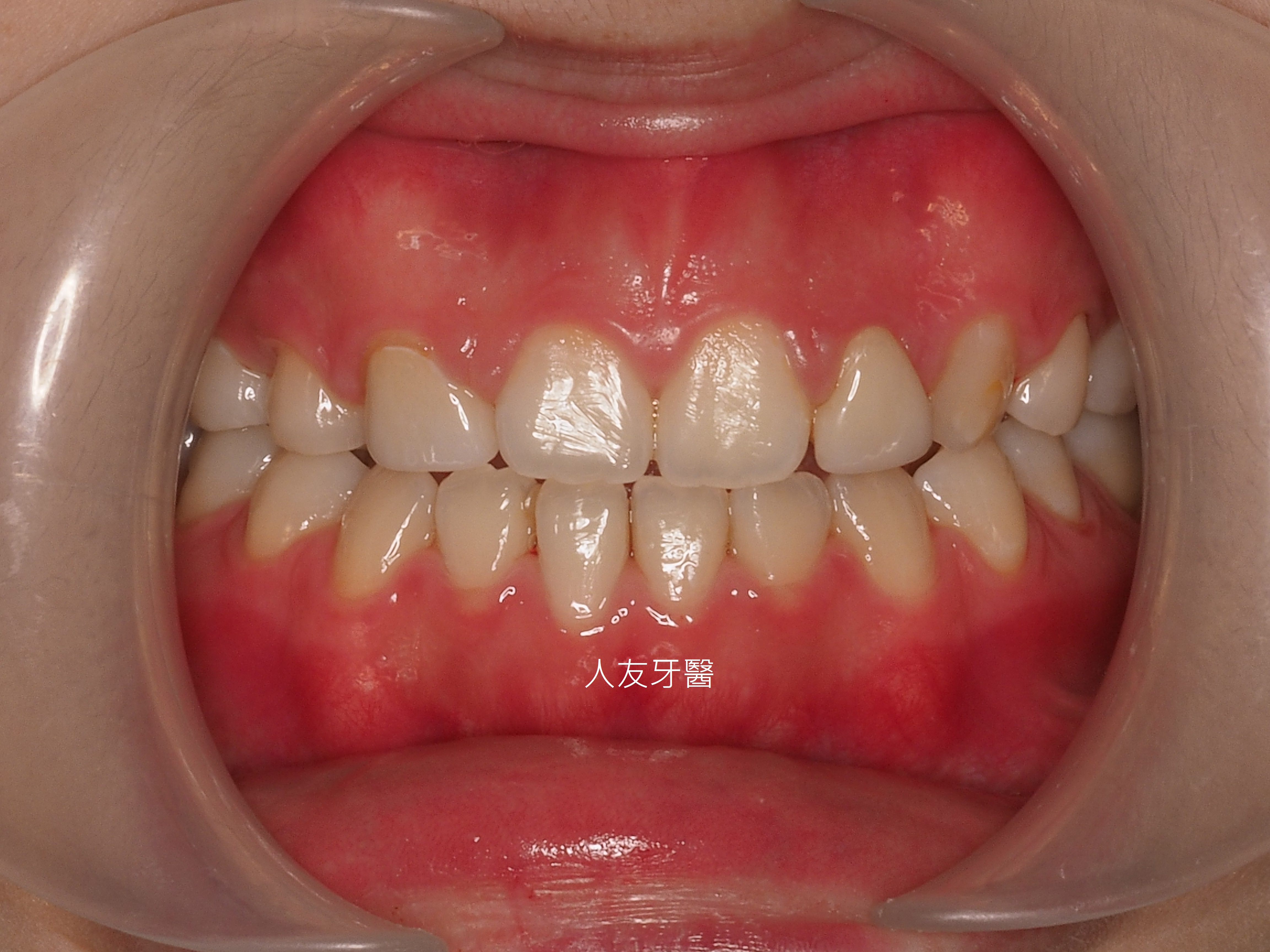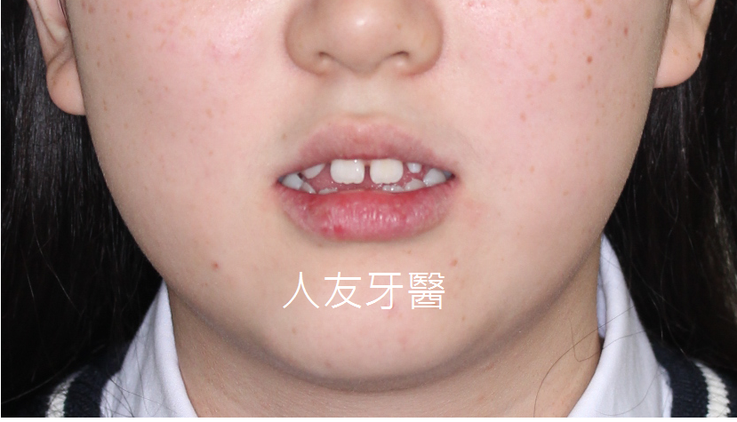 矯正前,下排牙齒咬在上排牙齒前面。