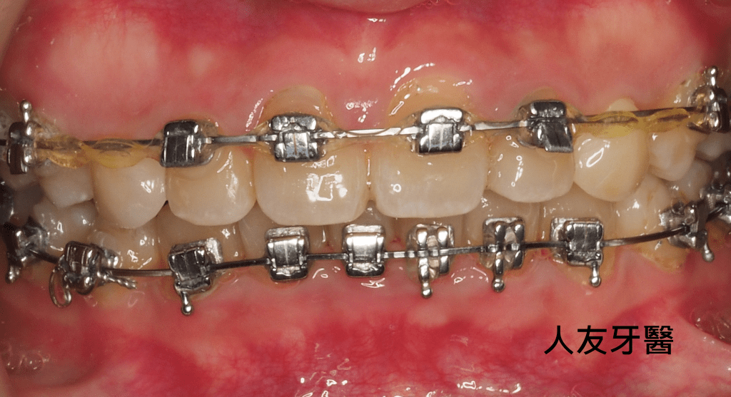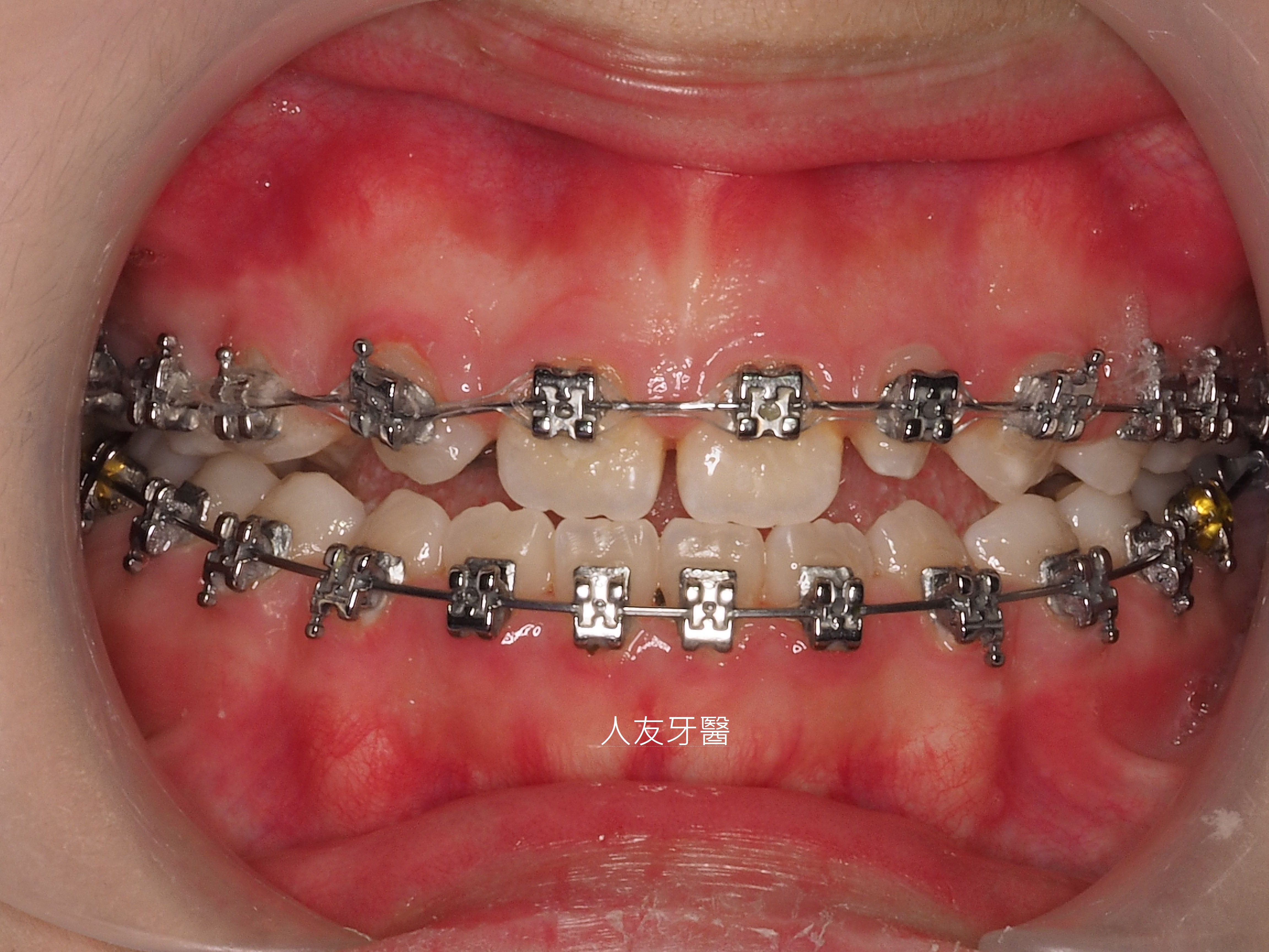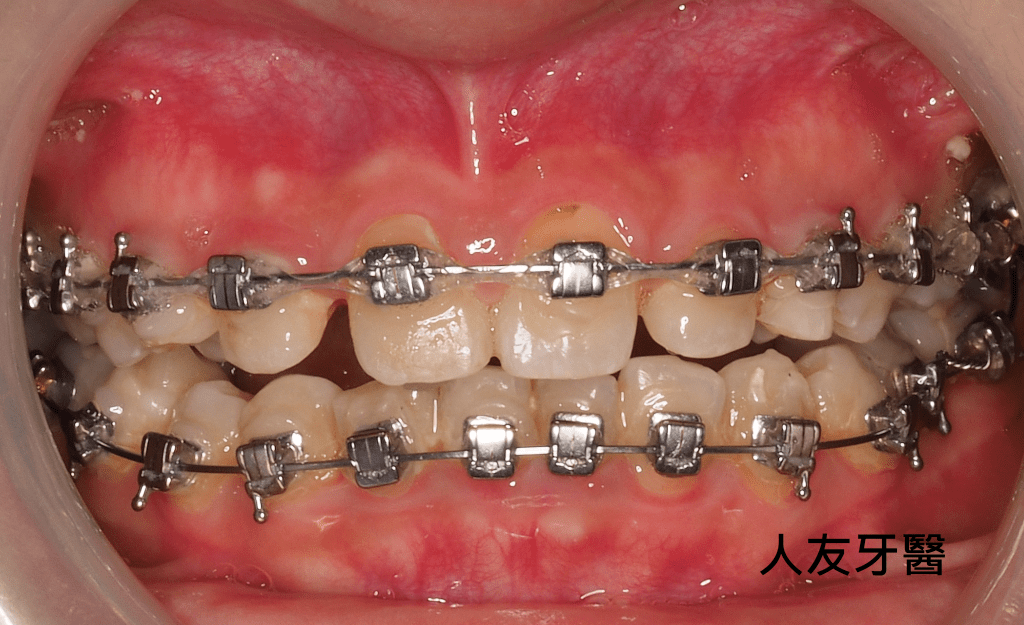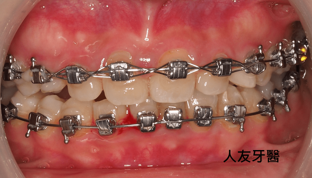 經由醫師評估,此患者決定做矯正治療,使用自鎖式矯正器,讓牙齒咬合咬到正確位置。