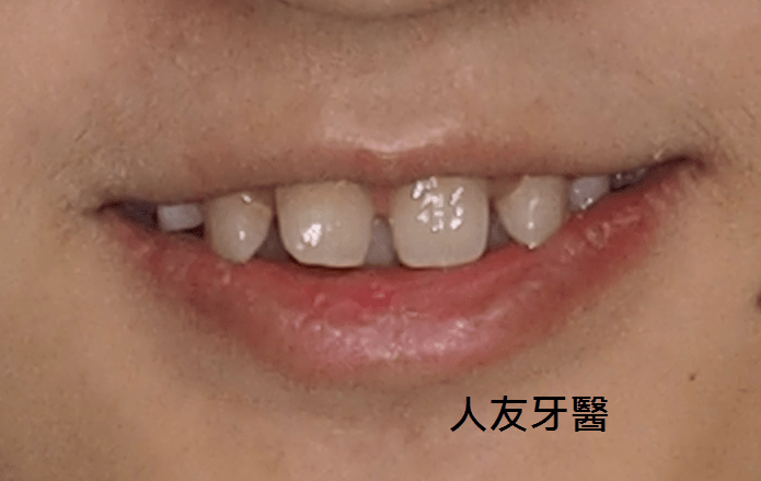下面這位患者因做完矯正後,覺得側門牙與另一邊的側門牙大小不對稱,想做陶瓷貼片改變牙齒的大小。